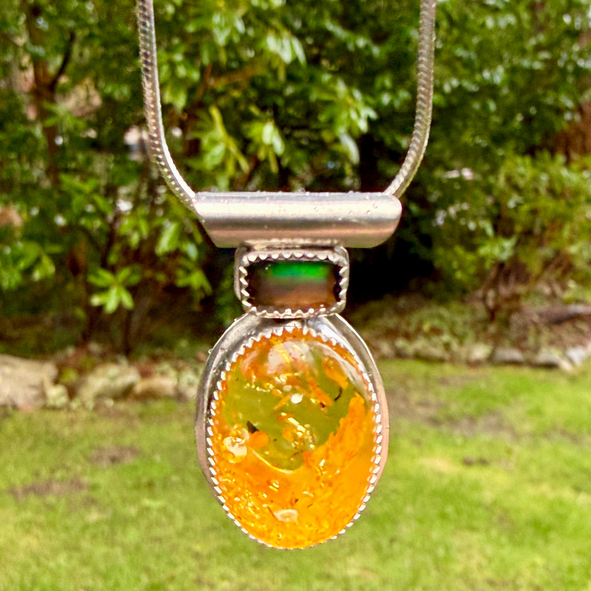 "Opal Sky" Ethiopian Opal and Hessonite Garnet Pendant