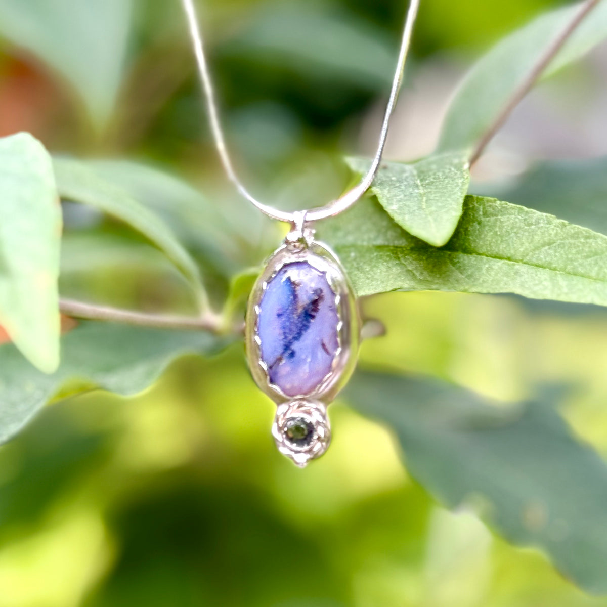 "Fields of Lavender" Yttrium Fluorite and Opal Pendant on Sterling Silver Chain